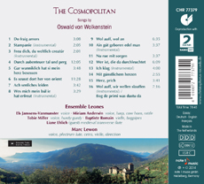 Die neueste CD des Ensemble Leones mit Liedern Oswalds von Wolkenstein ist beim Label Christophorus erschienen. Eingespielt mit dem SRF2 (Toningenieurin: Michaela Wiesbeck) und im Auftrag von Schloss Tirol enthält die CD neben ein paar "Klassikern" eine Reihe von Ersteinspielungen, sowie einige sonst selten zu hörende Stücke: