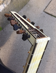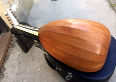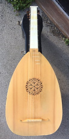 Gerle-Laute von Stephen Barber (London, 1981) mit Elfenbeinhals (inklusive persönlicher Erklärung des Bauers über die Herkunft des Materials: 19. Jh.).
